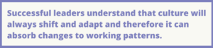 In terms of shifting your corporate culture to adapt to hybrid working, if it is what your staff want, and you are engaging with them, then there is a strong case to adapt to that desire. Successful leaders understand that culture will always shift and adapt and therefore it can absorb changes to working patterns. Dale Carnegie research on culture showed that for organisations to have cultures that thrive, senior leaders must change their attitudes and behaviours to reap the benefits. Those that measure their success through HR metrics and employee surveys understand that culture and employee engagement have an impact on corporate financial performance.