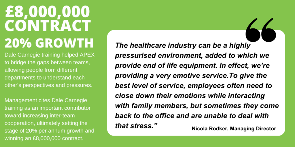 ” Dale Carnegie training helped us to develop channels for us to deal with those frustrations in a professional manner, which also led to better working relationships, and ultimately to better sales and service.” Nicola Rodker, Managing Director